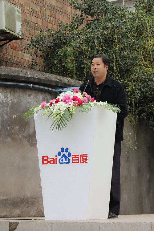 在同学们精彩的表演后,迎来了激动人心的捐赠仪式。四川省工商局副局长杨跃先生、成都百瀚科技有限公司(百度成都地区营销服务中心)副总经理助理杨菲菲女士和马林小学的校长孟华先生进行了激动人心的捐赠仪式。