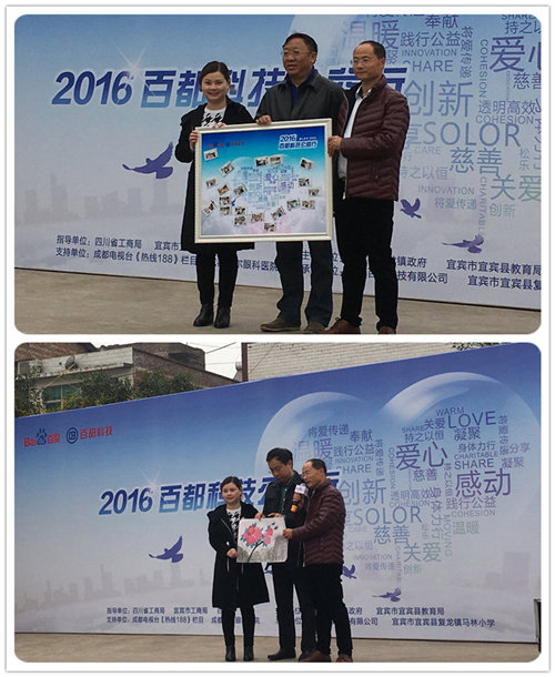2016百瀚科技公益行爱心助学·宜宾站活动进入尾声,希望通过本次的爱心行动,马林小学的师生们在政府和爱心企业的帮助下勤奋学习、健康快乐的成长。献出一份爱,传递一份温暖,希望未来有更多的社会爱心人士能够加入到公益的行动中来,百瀚科技爱心公益行的脚步将继续坚定前行。